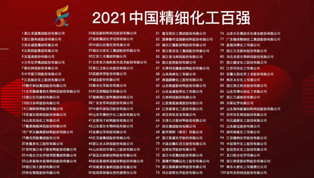 4月27日,“2021精细化工产业峰会暨中国精细化工百强发布会”以线上方式举行。会议发布了“2021中国精细化工百强”榜单,泛亚电竞股份公司蝉联榜单第二。
